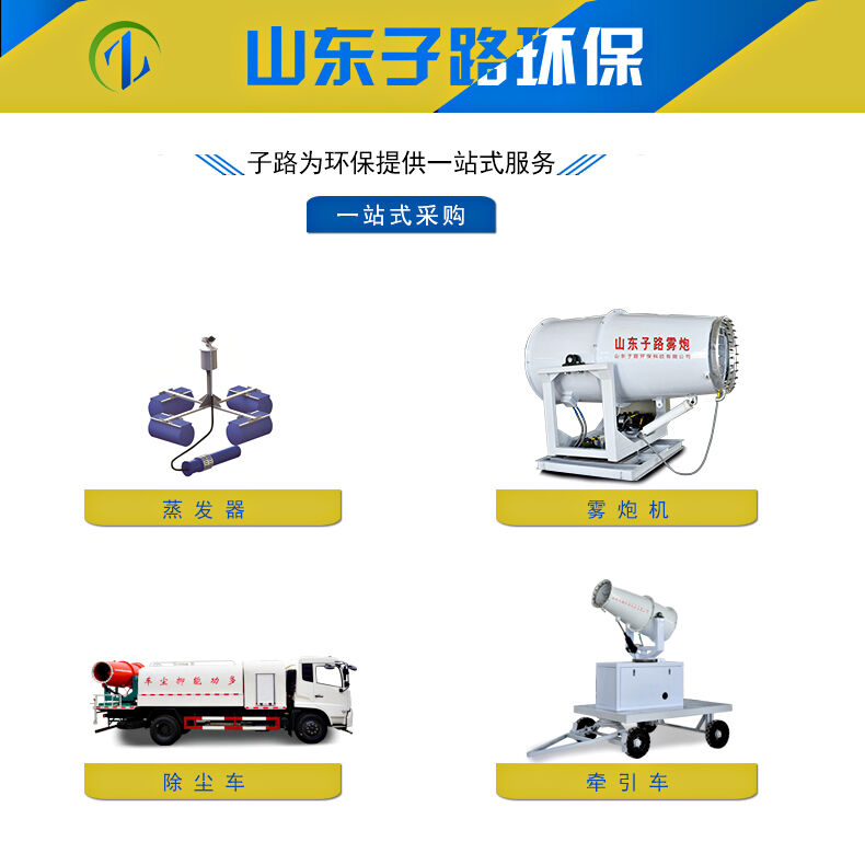 子路環(huán)保科技有限公司一款通過高壓風機將儲存的水壓縮成灰塵大小,在利用不銹鋼噴嘴部位將水霧化吹向高空凈化空氣的一種新型環(huán)保除塵產(chǎn)品。這款產(chǎn)品名字叫高射程霧炮機,