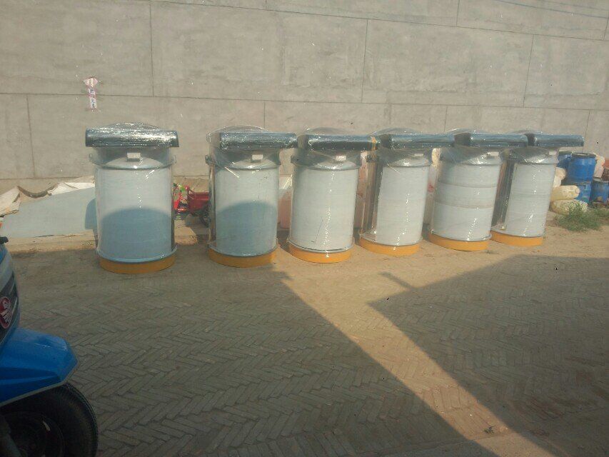 倉(cāng)頂單機(jī)除塵器的結(jié)構(gòu):倉(cāng)頂單機(jī)除塵器是一種圓形可拆的金屬濾筒,底板上有14個(gè)嵌入圓形孔,它設(shè)有14個(gè)濾芯,扎緊在上端1個(gè)振動(dòng)器的吊架上,定時(shí)震動(dòng),使濾芯阻留下來的灰塵降落在倉(cāng)內(nèi)。