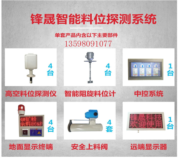 高空料位探測儀、阻旋式料位計、中控系統(tǒng)、地面顯示終端、安全上料閥、遠(yuǎn)程顯示器六大子系統(tǒng)組成!