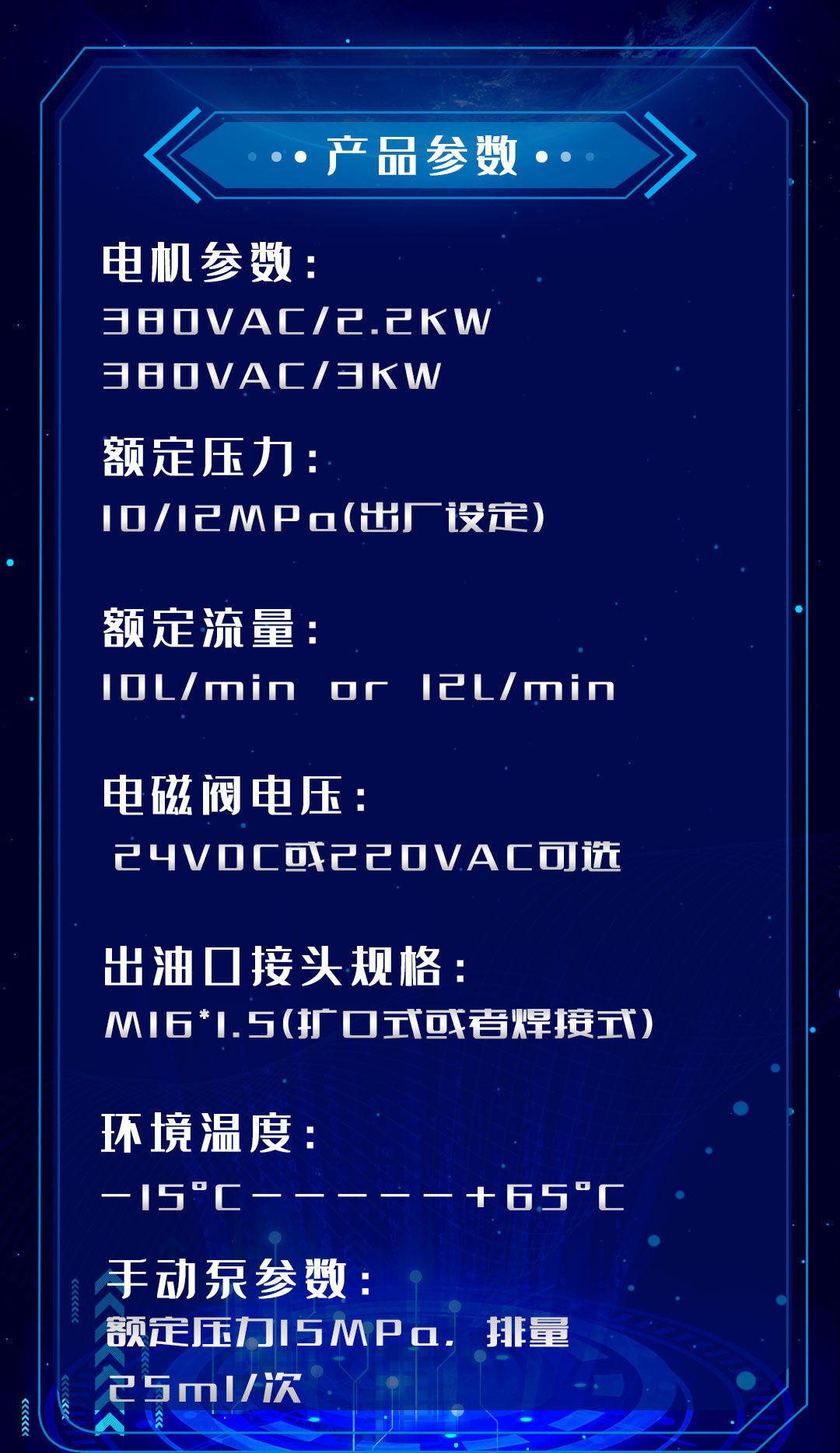 專(zhuān)門(mén)的手動(dòng)泵裝置,避免了設(shè)備由于停電等特殊情況而導(dǎo)致液壓油泵不能正常運(yùn)行所造成的損失。有臥式泵站和立式泵站選擇,配套液壓通用油缸使用。