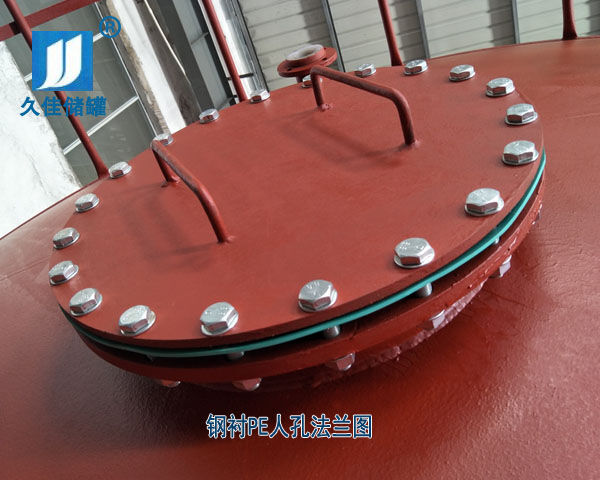 結(jié)構(gòu):鋼襯塑產(chǎn)品一般由桶身、平底、封頂、人孔、進(jìn)料口法蘭、出料口法蘭和液位孔口法蘭組成,臥室鋼襯塑儲(chǔ)罐通常還有標(biāo)準(zhǔn)鋼質(zhì)支座,鋼襯塑產(chǎn)品一般根據(jù)用戶要求設(shè)計(jì)制造。