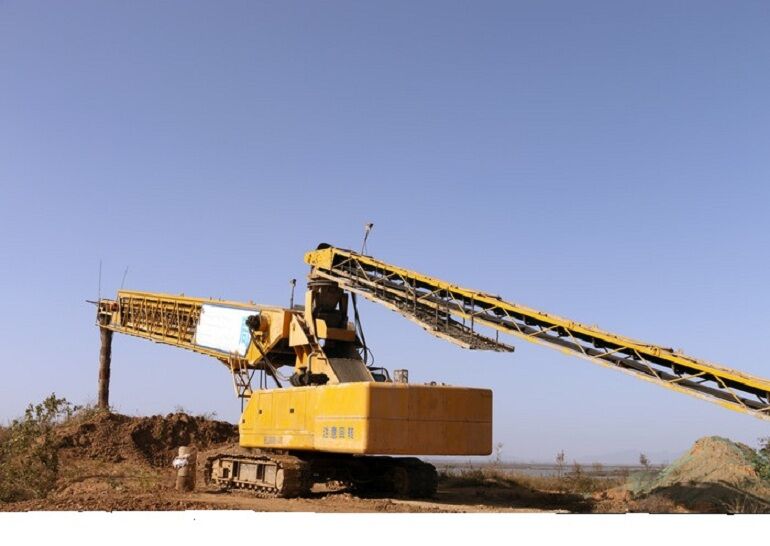 1.按順序啟動布料膠帶機(jī)和上料膠帶機(jī),待膠帶輸送機(jī)運行穩(wěn)定后,利用混凝土攪拌車開始給料,攪拌車給料量不小于履帶式布料機(jī)設(shè)計額定輸送量的110%,同時開始計時。