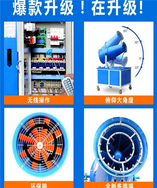 霧炮機功力強、射程遠、覆蓋范圍廣、可以實現(xiàn)精量噴霧;工作效率高、噴霧速度快;對容易引起塵埃的堆場噴水除塵時,噴出的霧粒細小、與飄起的塵埃接觸時,形成一 種潮濕霧狀體,能快速將塵埃抑制降沉;配套動力靈活,既可用三相380V的市電,也可配套柴油發(fā)電機組供電;可固定安裝在混凝土澆筑的平臺上,也可配套柴 油發(fā)電機組供電安裝在運輸車輛上;操作靈活,使用安全可靠,遙控和人工控制操作,可隨意控制調(diào)節(jié)水平旋轉(zhuǎn)噴霧角度;耗水量其它抑塵噴灑設(shè)備可節(jié)約 ~(噴槍、灑水機車),且水霧覆蓋粉塵面積遠遠大于其它抑塵噴灑設(shè)備。