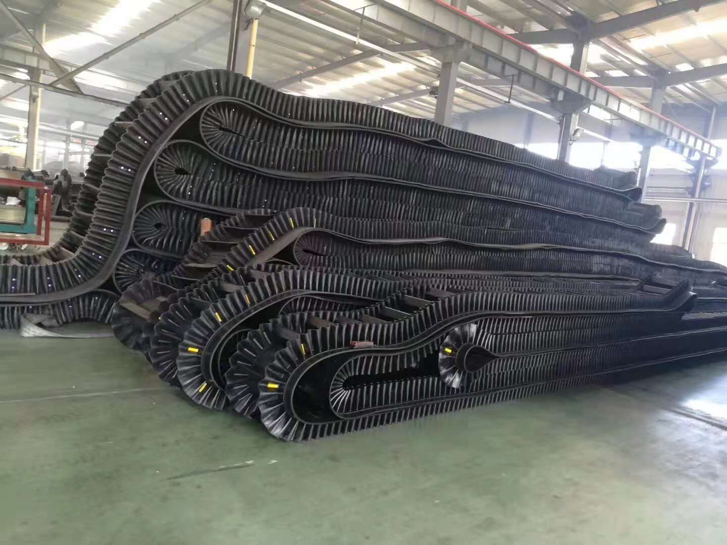 2 大傾角輸送帶直接不需要打孔,也不需要借助外力,而是借助本身的結(jié)構(gòu)就可以完成物料的由低處向高處的物料輸送。大傾角輸送帶的基帶和普通輸送帶的基帶是一樣的,也是平皮帶,這個平皮帶的生產(chǎn),經(jīng)過煉膠,硫化等等一系列的工序生產(chǎn)而成?;鶐У纳a(chǎn)對于大傾角擋邊帶來說也是一個很重要的步驟。在這一步的生產(chǎn)里,我們需要根據(jù)客戶的實際需求,選擇相對應(yīng)的拉力布層,現(xiàn)在無論是普通棉帆布布層,尼龍布層,聚酯布層,鋼絲繩芯布層,都可以由您進(jìn)行選擇。現(xiàn)在基本來說,普棉布層的拉力為56,尼龍,聚酯布層的拉力為100-400,鋼絲繩芯大傾角擋邊膠帶的拉力為st600-st5600。不同的拉力可以為您運(yùn)輸不同的物料。