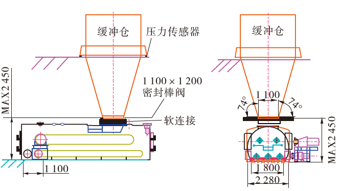⑤增加重量傳感器作為料封的基礎(chǔ),當(dāng)物料在倉(cāng)內(nèi)黏附,容易誤導(dǎo)稱(chēng)重傳感器,造成密封效果差,當(dāng)物料濕度進(jìn)一步加大,則誤導(dǎo)更厲害,基本失去密封效果。