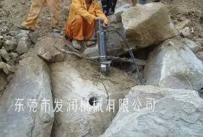液壓劈裂機(jī)以液壓油為驅(qū)動力,并巧妙地應(yīng)用斜契原理,使劈裂器頭破拆力達(dá)到幾百噸,甚至上千噸,這樣就可以在幾秒鐘時間內(nèi)把上百噸的巨石輕而易舉地開裂開來,從而使堅硬而巨大的巖石從山體中分離。