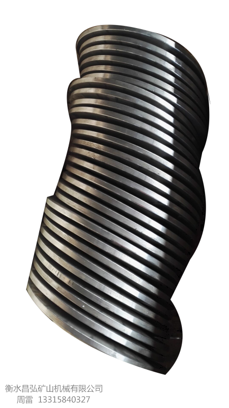 絞龍葉片具有剛性好,表面光潔,形狀規(guī)整,內(nèi)外徑可調(diào),長短可定,精度高,便于安裝,避免了傳統(tǒng)的手工焊接葉片因焊接質(zhì)量造成的弊端,也提高了絞龍葉片的加工能力,扎出的絞龍葉片材質(zhì)是碳鋼板,Q235,Q345和304不銹鋼板,特別是碳鋼板,絞龍葉片表面產(chǎn)生冷作硬化,硬度和耐磨性提高一倍左右,特別是外沿硬度可達(dá)HB240,希望廣大用戶不必?fù)?dān)心邊緣薄的原因,此設(shè)備可調(diào)試扎出幾十種規(guī)格的絞龍葉片。