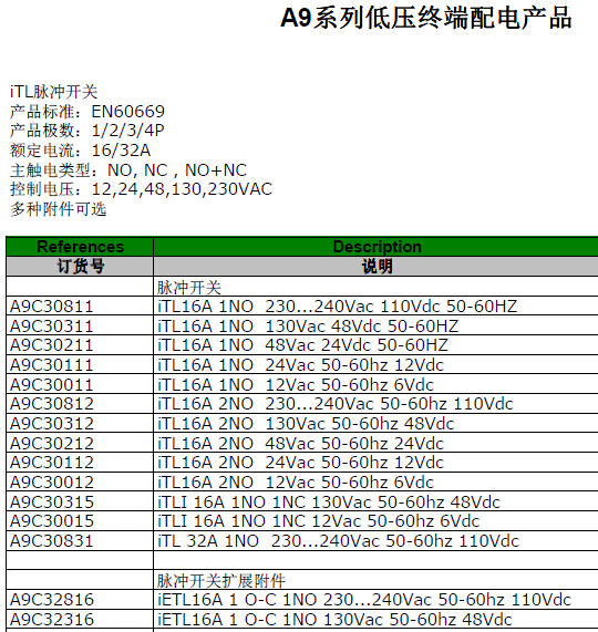 歸屬行業(yè):標(biāo)準(zhǔn)接觸器iCT 4NC 240V 25A