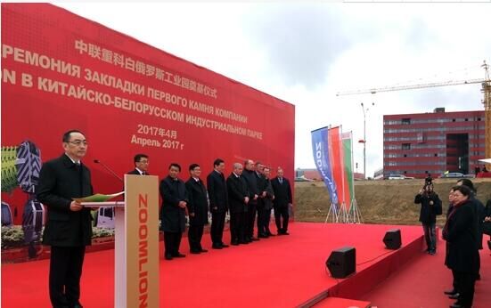 2014年,中白工業(yè)園項目在白俄羅斯首都明斯克近郊正式奠基動工;2015年5月,中聯(lián)重科作為首批中資企業(yè)正式入駐“絲綢之路經(jīng)濟帶”的旗艦項目“中白工業(yè)園”。2015年12月30日,中聯(lián)重科與MAZ集團首批合資組裝設備正是在莫吉廖夫下線的。據(jù)了解,首批下線的設備包括40噸汽車起重機,60噸汽車起重機和16噸環(huán)衛(wèi)掃路車,品牌命名為ZOOMLION-MAZ。2017年2月,中聯(lián)重科與MAZ的合資公司正式成立。除與MAZ集團的合作外,中聯(lián)重科還在白俄羅斯積極拓展如環(huán)境治理、農(nóng)業(yè)機械等領域的合作。
